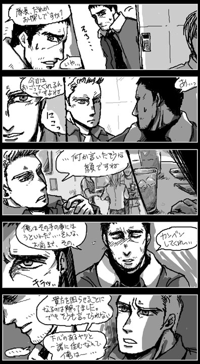 ・なんやかんやあって、レオンと別行動中にクリスが負傷するんだけど、つき離して一緒にいなかったことを後悔するレオン…って感じでした。